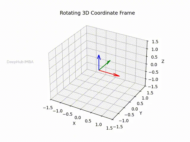 机器人的姿态其实就是一个三维坐标系。这个坐标系由三个互相垂直、长度为1的向量组成,比如最简单的情况:(1,0,0)ᵀ、(0,1,0)ᵀ、(0,0,1)ᵀ。把这三个向量当作列向量排在一起,就得到了一个3×3的旋转矩阵。