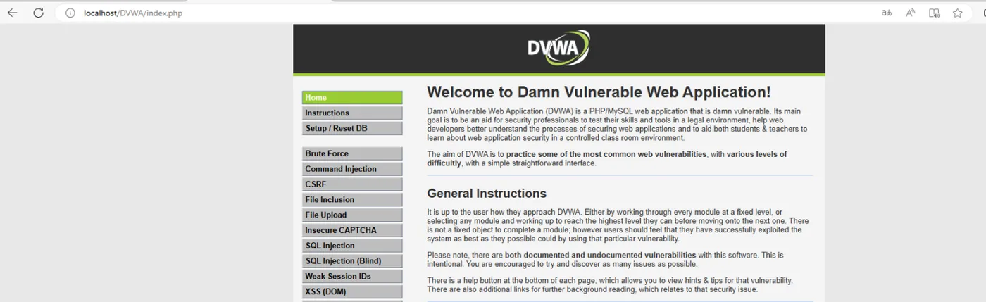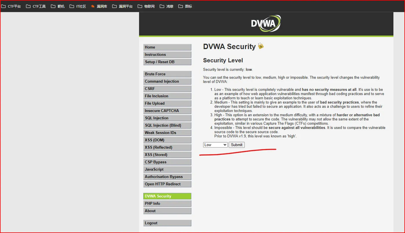 - dvwa安装路径:https://github.com/digininja/DVWA