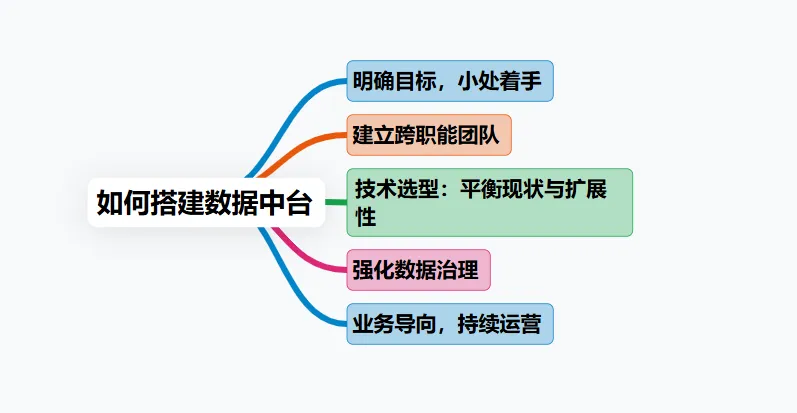 搭建数据中台是一项系统工程,既不能急于求成,也不能盲目求大。根据实际经验,我总结为以下五个关键步骤: