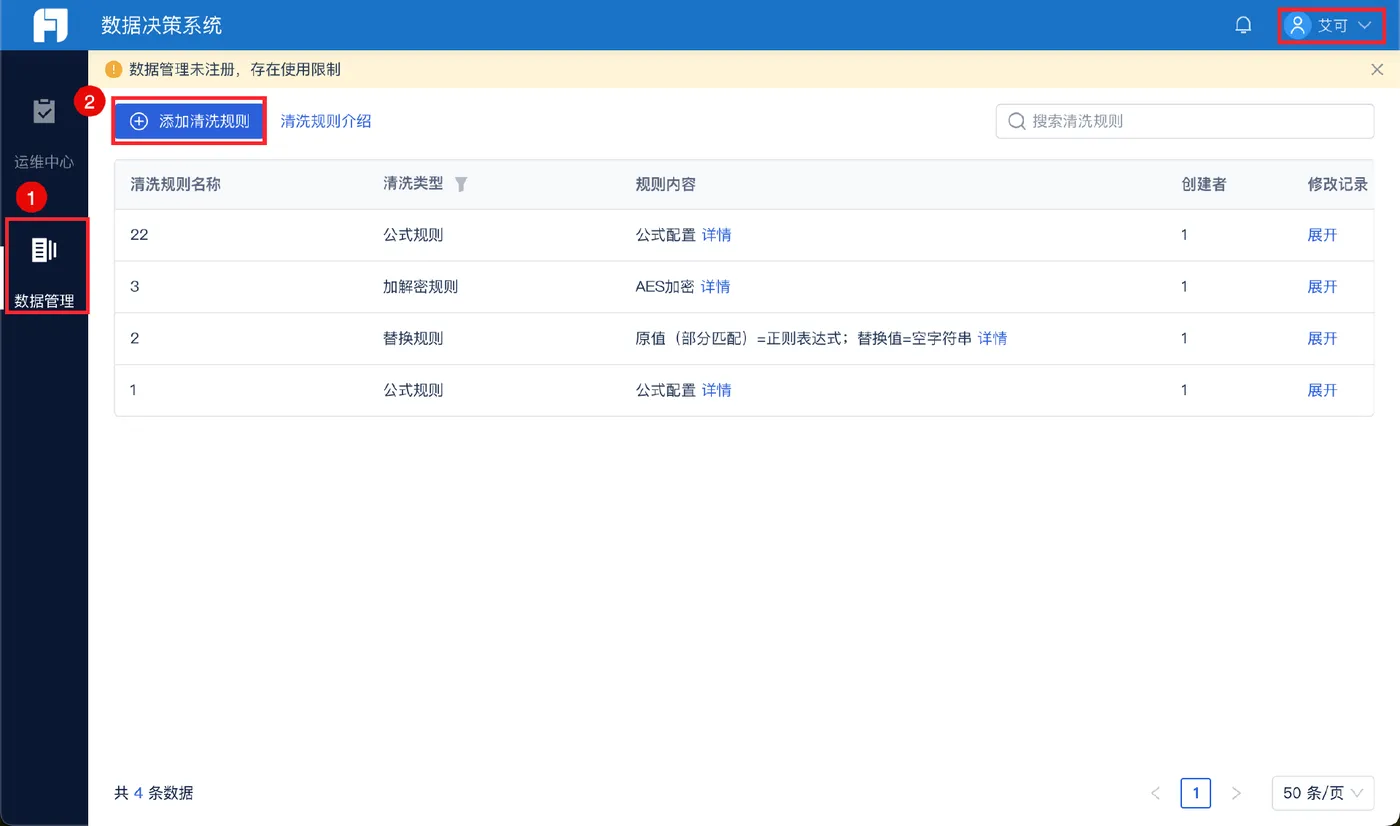 我们可以在FineDataLink的管理系统里选择权限管理,并选择数据平台对数据进行清洗等操作,还可以添加清洗规则,一键过滤,最后得到想要的数据。