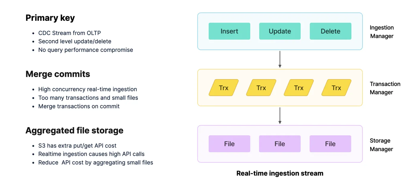 - 打通批流一体的写入链路,支持从对象存储和 Kafka 流直接导入数据至 Iceberg,大幅简化数据接入流程。