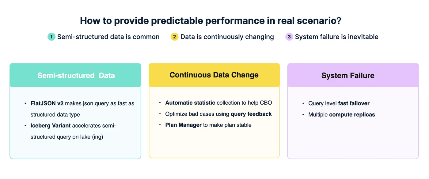 - 自动收集数据变化后的最新统计信息,以帮助 CBO 做出更优的执行决策。但考虑到实时收集的成本,仍可能存在部分性能不佳的查询情况。