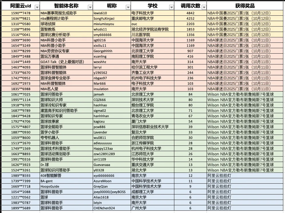 感谢大家积极参与“2025年AI-BA高校AI篮球赛”,现就获奖名单公布,因官网前台数据统计截止时间延迟,最终获奖名单以及获得奖品以此公告为准。