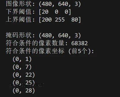 mask= (img>=lower) & (img<=upper) # (480,640,3) vs (3,)