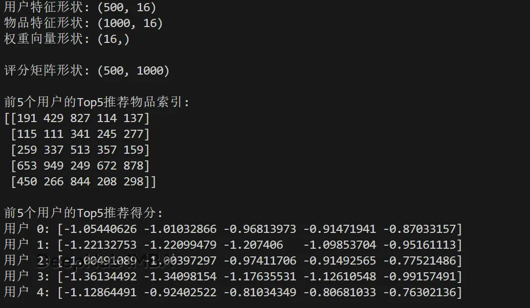 print(f"用户 {i}: {scores[i, top5[i]]}")