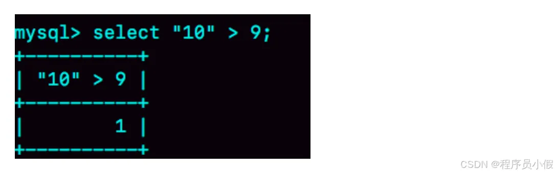 这里有一个简单的方法,看 select “10” > 9的结果: