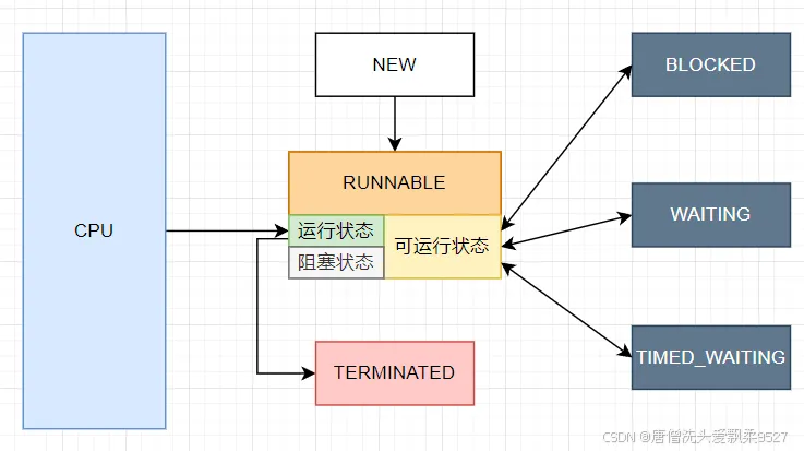 - 当调用 t.start() 方法时,那么就会出现:New ——> RUNNABLE