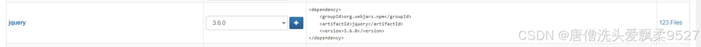 <dependency> <groupId>org.webjars.npm</groupId> <artifactId>jquery</artifactId> <version>3.6.0</version> </dependency>