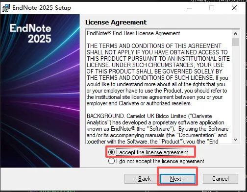 7.同意协议,点击[I ACCEPT...],点击 Next继续