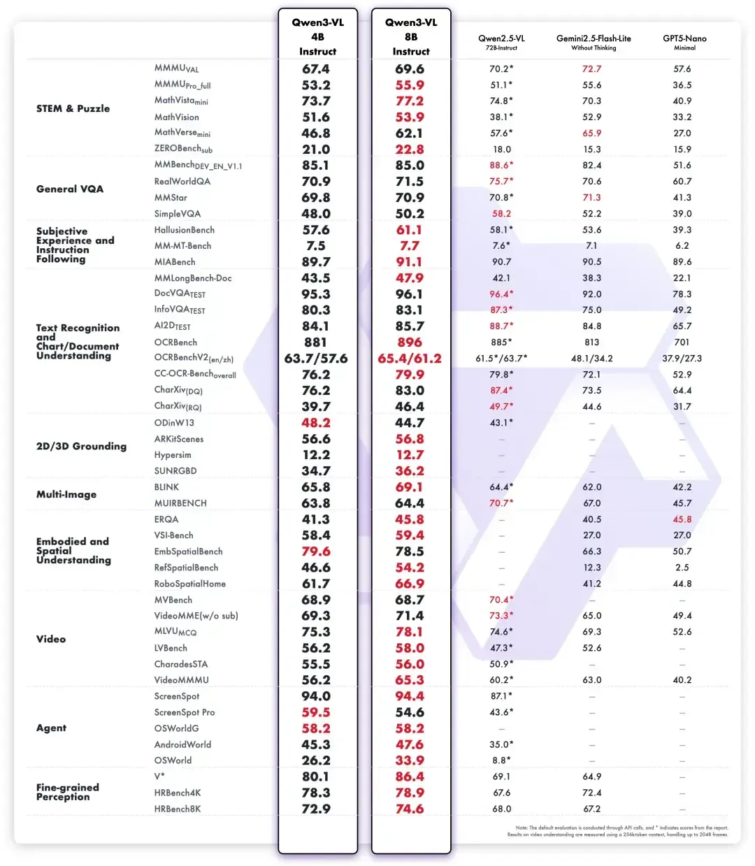 凌晨,Qwen3-VL系列再添新成员——Dense架构的Qwen3-VL-8B、Qwen3-VL-4B 模型,本地部署友好,并完整保留了Qwen3-VL的全部表现,评测指标表现优秀。