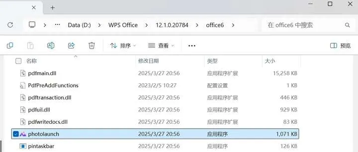 釜底抽薪解决它:在WPS的安装目录里,找到photolaunch.exe,删除掉,WPS看图就没有了