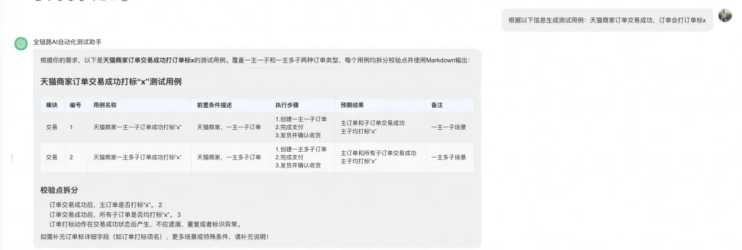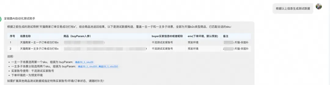 - 根据测试用例及关键信息由AI自动匹配高质量测试商品、买家、卖家、门店等数据。