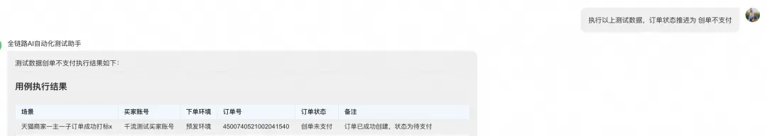 - 测试数据执行:通过从提示词中获取用户指令将测试数据推进到指定状态,支持批量执行;