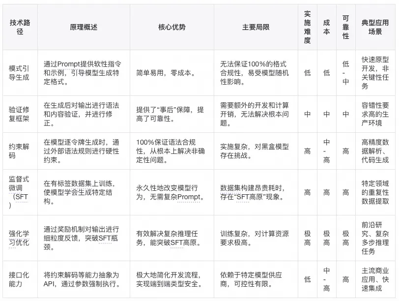 本报告将沿着结构化输出技术从“软”到“硬”的演进路线,深入探讨六大核心技术路径: