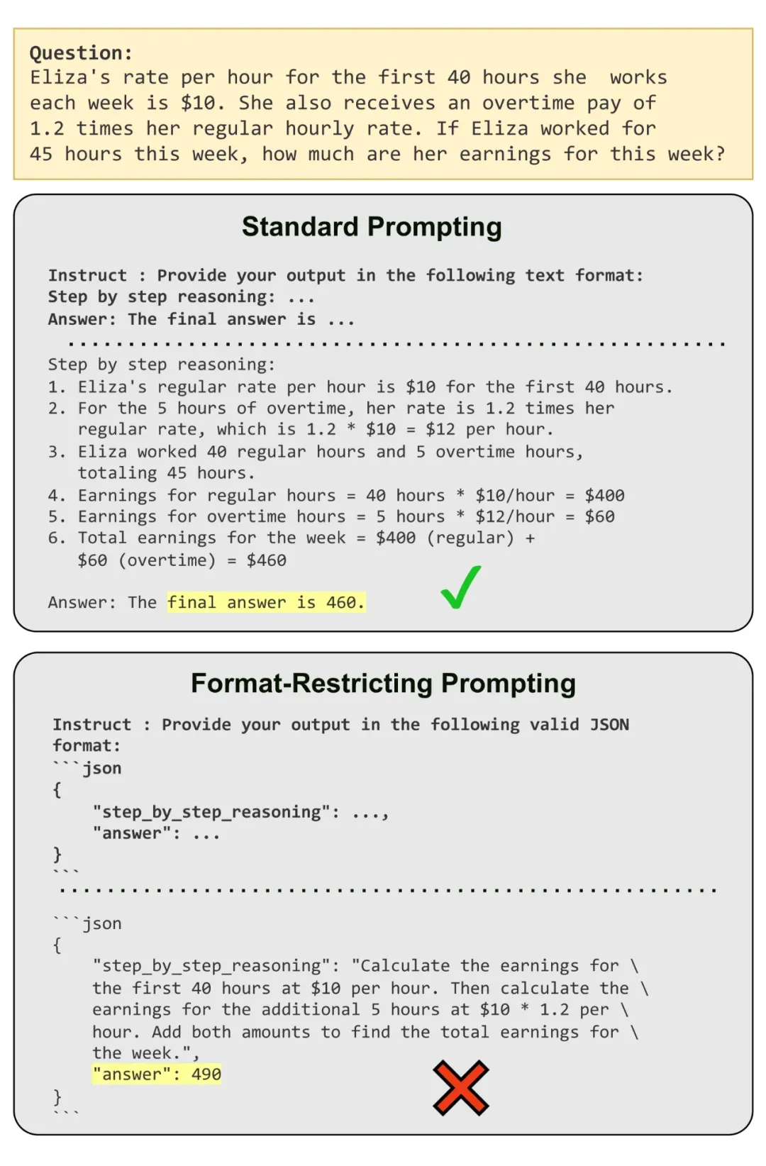 - Let Me Speak Freely? A Study on the Impact of Format Restrictions on Performance of Large Language Models:https://arxiv.org/abs/2408.02442