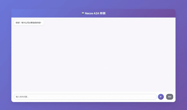 <properties> <spring.ai.alibaba.version>1.0.0.4</spring.ai.alibaba.version> <spring.boot.version>3.4.5</spring.boot.version> </properties> <dependencies> <!-- 引入A2A Client starter --> <dependency> <groupId>com.alibaba.cloud.ai</groupId> <artifactId>spring-ai-alibaba-starter-a2a-client</artifactId> <version>${spring.ai.alibaba.version}</version> </dependency> <!-- 引入A2A Nacos 注册中心 --> <dependency> <groupId>com.alibaba.cloud.ai</groupId> <artifactId>spring-ai-alibaba-starter-a2a-registry</artifactId> <version>${spring.ai.alibaba.version}</version> </dependency> <!-- 可选,引入web构建简单的页面 --> <dependency> <groupId>org.springframework.boot</groupId> <artifactId>spring-boot-starter-web</artifactId> <version>${spring.boot.version}</version> </dependency> </dependencies>