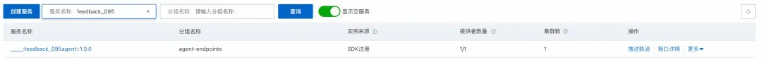 启动 A2A Server 后,即可在 Nacos 控制台上看到注册的 Agent 信息。如下图所示。