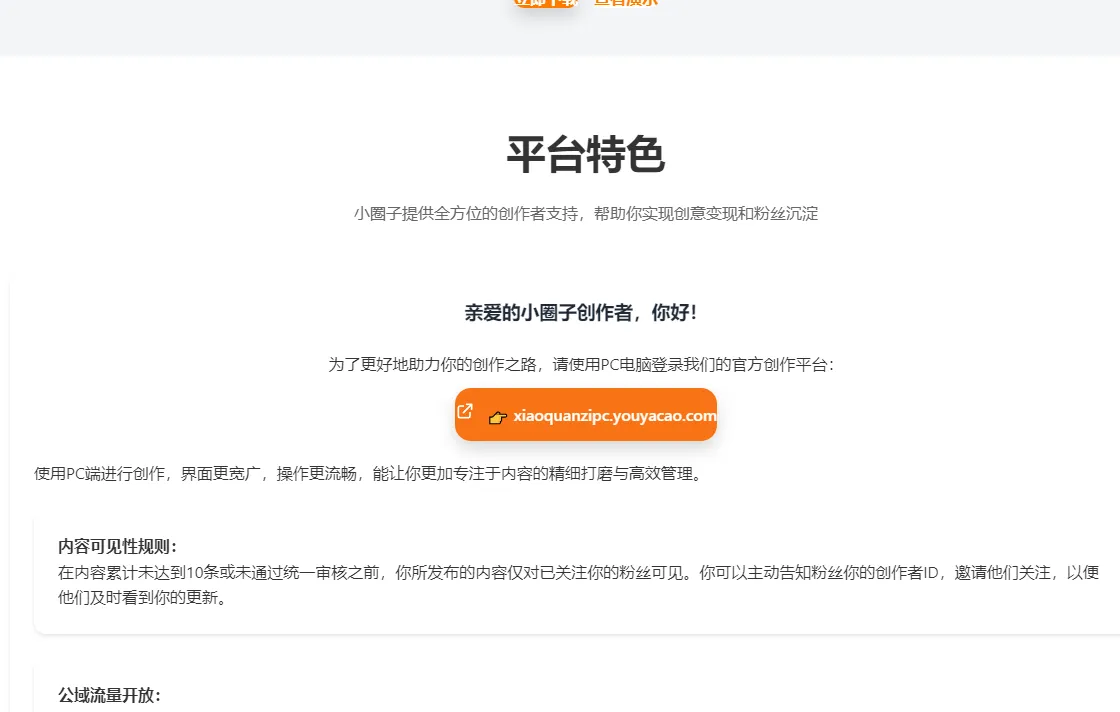 <ul class="space-y-2"> <li><router-link to="/features" class="text-gray-400 hover:text-white transition-fast">平台特色</router-link></li> <li><router-link to="/creators" class="text-gray-400 hover:text-white transition-fast">创作者价值</router-link></li> <li><router-link to="/monetization" class="text-gray-400 hover:text-white transition-fast">变现方式</router-link></li> <li><router-link to="/testimonials" class="text-gray-400 hover:text-white transition-fast">用户评价</router-link></li> </ul>