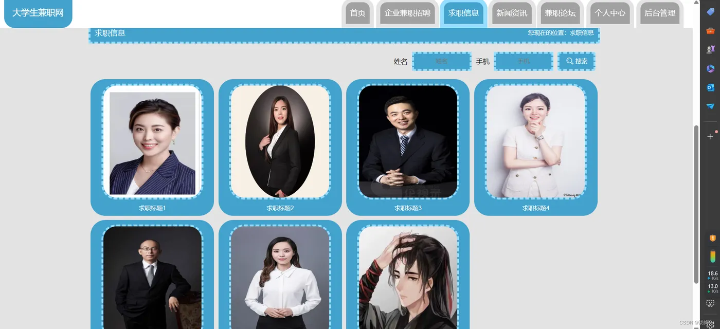 目前,国内大学生兼职系统的研究仍处于起步阶段,尚未形成完善的体系。在国内,一些学校和学生组织尝试建立校园内的兼职平台,以帮助学生寻找兼职机会。然而,这些平台往往面临着信息不足、功能单一、安全性低等问题,无法满足大学生多样化的兼职需求,在近年来,随着互联网和移动互联网技术的发展[5],一些互联网公司也开始尝试开发大学生兼职系统。这些系统通过在线平台提供兼职信息发布、匹配和交易功能,为大学生和用人单位提供了更便捷的兼职渠道。然而,这些系统仍存在诸多问题,如信息真实性、劳动保障、信息安全等方面仍需要进一步完善,在学术研究领域,国内尚缺乏对大学生兼职系统的系统性研究。目前,国内的大学生兼职系统研究主要集中在系统功能设计、用户体验优化、信息安全保障等方面,缺乏对大学生就业市场的深入了解和分析。因此,国内大学生兼职系统的研究还有很大的发展空间,需要更多的研究者关注和投入,国内大学生兼职系统的研究现状尚处于初级阶段,存在诸多的问题和挑战。未来,需要深入研究大学生就业市场的需求,结合实际情况,构建更加完善的大学生兼职系统,为大学生提供更好的兼职服务和支持。