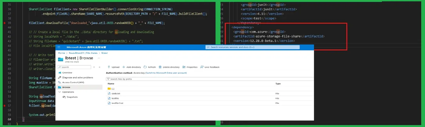 使用Azure Storage Account 的File Share,如何通过Java 代码来下载、上传文件呢?