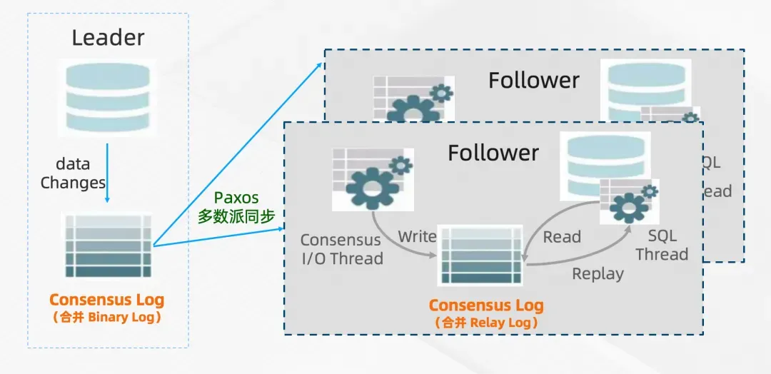 PolarDB-X基于X-Paxos协议,替换了传统MySQL基于binlog的主备复制协议,引入了自有的日志管理机制,基于binlog的载体合并了binlog和relay log,同时提供show consensus log的指令。