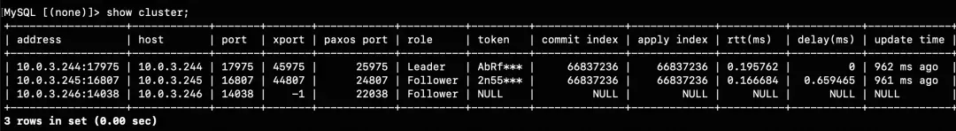 1. show cluster (查询PolarDB-X后端Paxos集群信息)