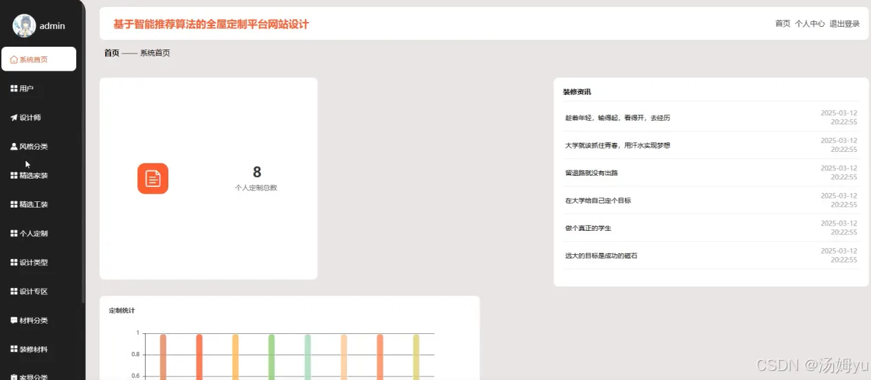 在全屋定制领域,消费者面临着海量的设计风格、材料选择和家具搭配,往往难以快速找到符合自身需求的定制方案。传统模式下,消费者需要花费大量时间和精力进行筛选和比较,设计师和商家也难以精准把握消费者的真实需求。基于智能推荐算法的全屋定制平台网站设计旨在通过技术手段优化这一流程。该研究的核心目的是构建一个能够深度理解用户需求的智能平台,通过分析用户的浏览行为、偏好设置和历史订单等数据,精准推送个性化的设计方案、装修材料和家具商品。平台将整合家装、工装、设计专区、装修资讯等模块,为用户提供一站式服务,提升用户体验和决策效率。研究还致力于通过智能推荐算法优化平台的运营效率,帮助商家和设计师更好地了解市场需求,实现精准营销,从而推动全屋定制行业的数字化转型和创新发展。