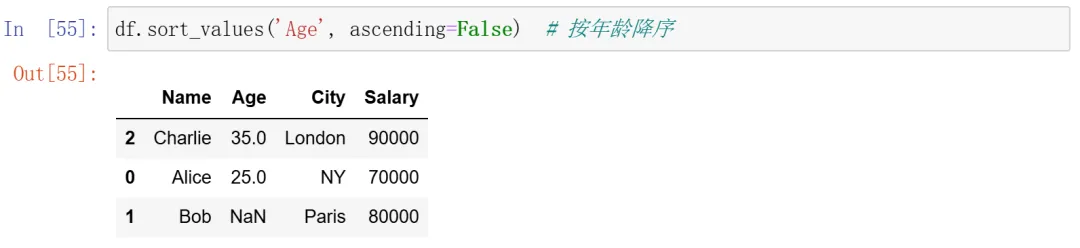df.sort_values('Age', ascending=False) # 按年龄降序