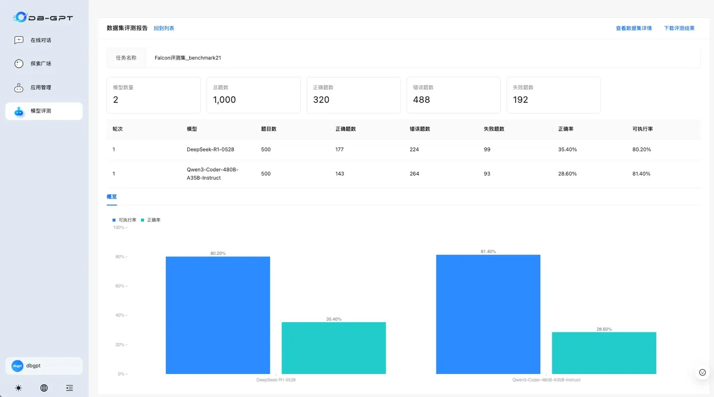 🍀 DB-GPT支持基于Falcon Text2SQL评测集的LLM评测功能
