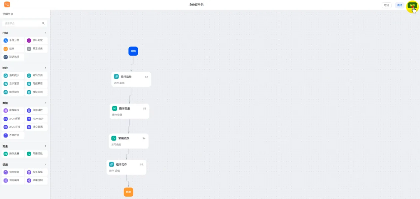 在实际场景下,用户输入身份证号后,应该自动计算出年龄。我们可以为身份证组件添加交互逻辑,当用户输入身份证号后,系统获取生日信息,并进行计算,最终将计算结果赋值年龄组件。