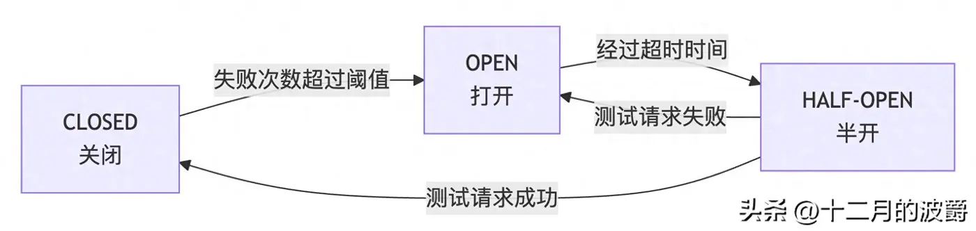 熔断器通常包含三种状态,其状态转换如下图所示: