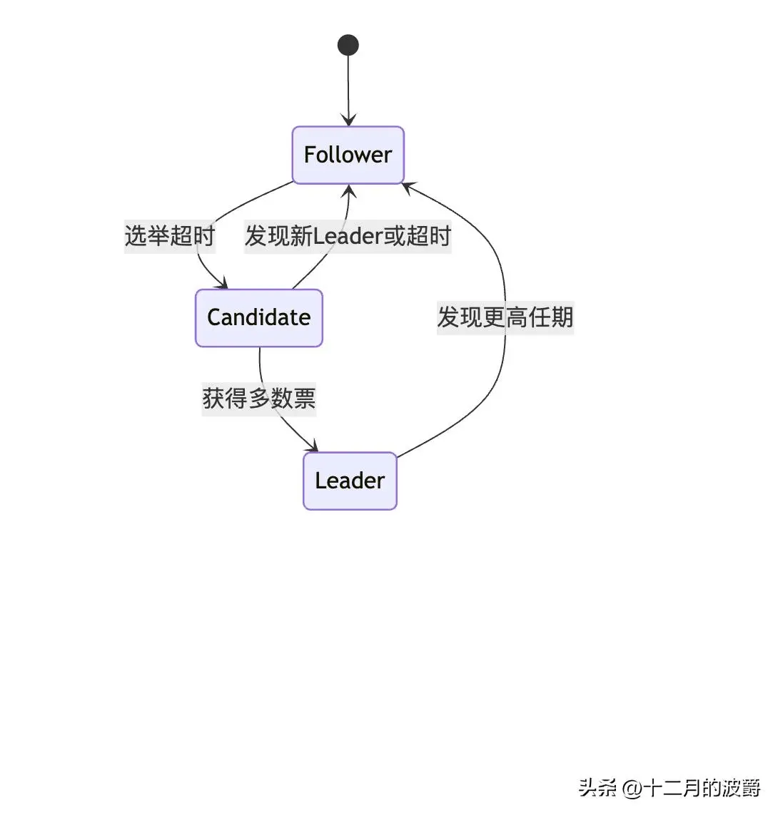 public class RaftTermConcept { // 任期是Raft的核心时间概念 public class Term { private long termNumber; // 单调递增的任期编号 private Node leader; // 该任期的Leader(可能为空) // 每个任期最多有一个Leader // 有的任期可能没有Leader(选举失败) } // 任期的生命周期 public void termLifecycle() { // 开始:选举阶段(多个Candidate竞争) // 中期:正常操作阶段(Leader处理请求) // 结束:新的选举触发(Leader故障或任期结束) } }