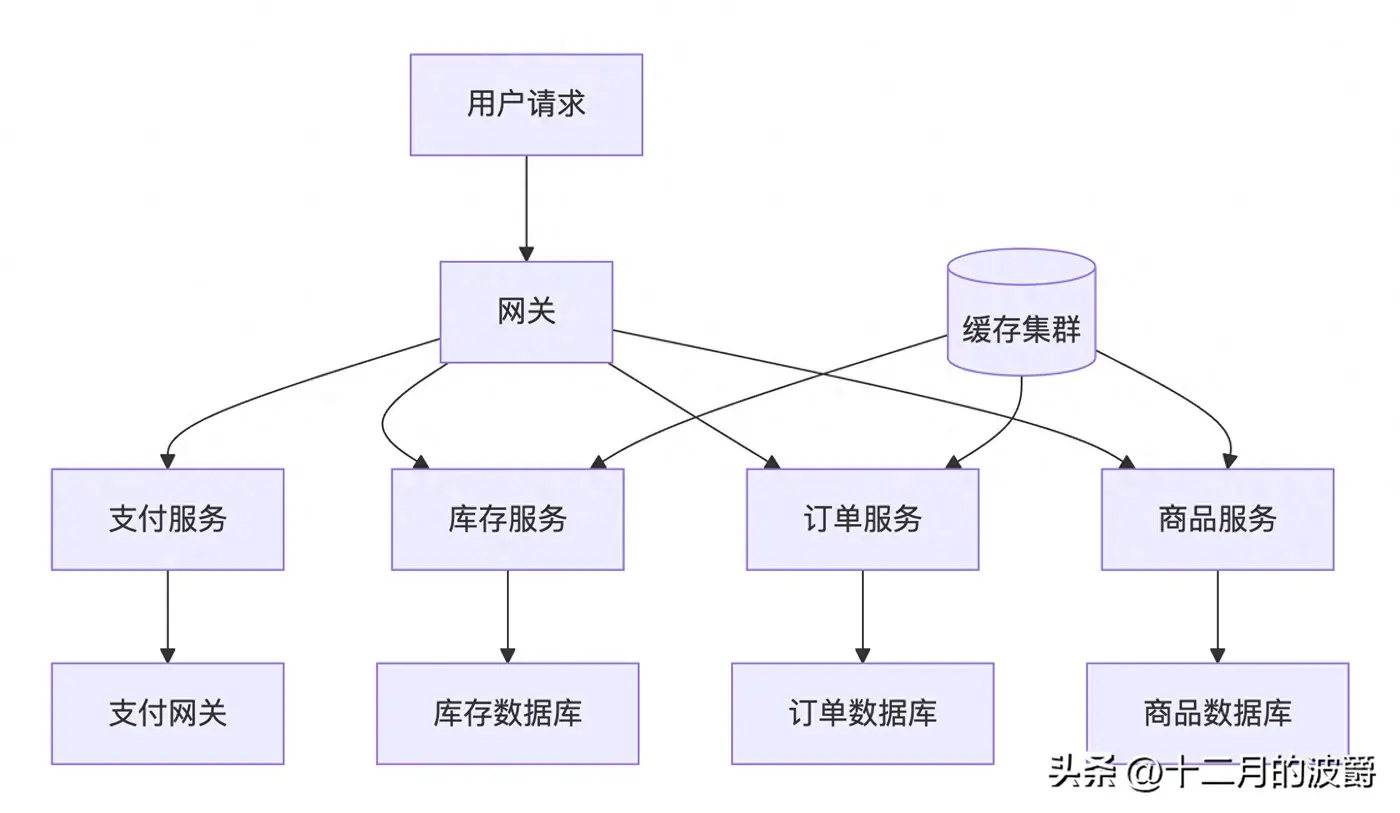 想象一个现代化的电商系统架构:
