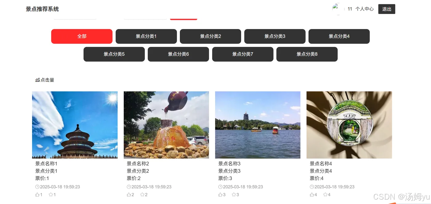对于旅游行业而言,该推荐系统有助于实现旅游资源的优化配置。通过精准推荐,能够引导游客前往一些相对冷门但具有独特魅力的景点,避免热门景点的过度拥挤,促进旅游市场的均衡发展。同时,系统可以根据游客的反馈和评价,为旅游企业提供有价值的市场信息,帮助其了解游客需求的变化趋势,进而调整和优化旅游产品与服务,提升旅游企业的竞争力和市场适应性,推动整个旅游行业的创新与升级。