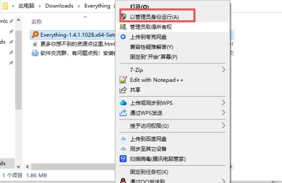 3.鼠标右击【Everything64】选择【以管理员身份运行】。