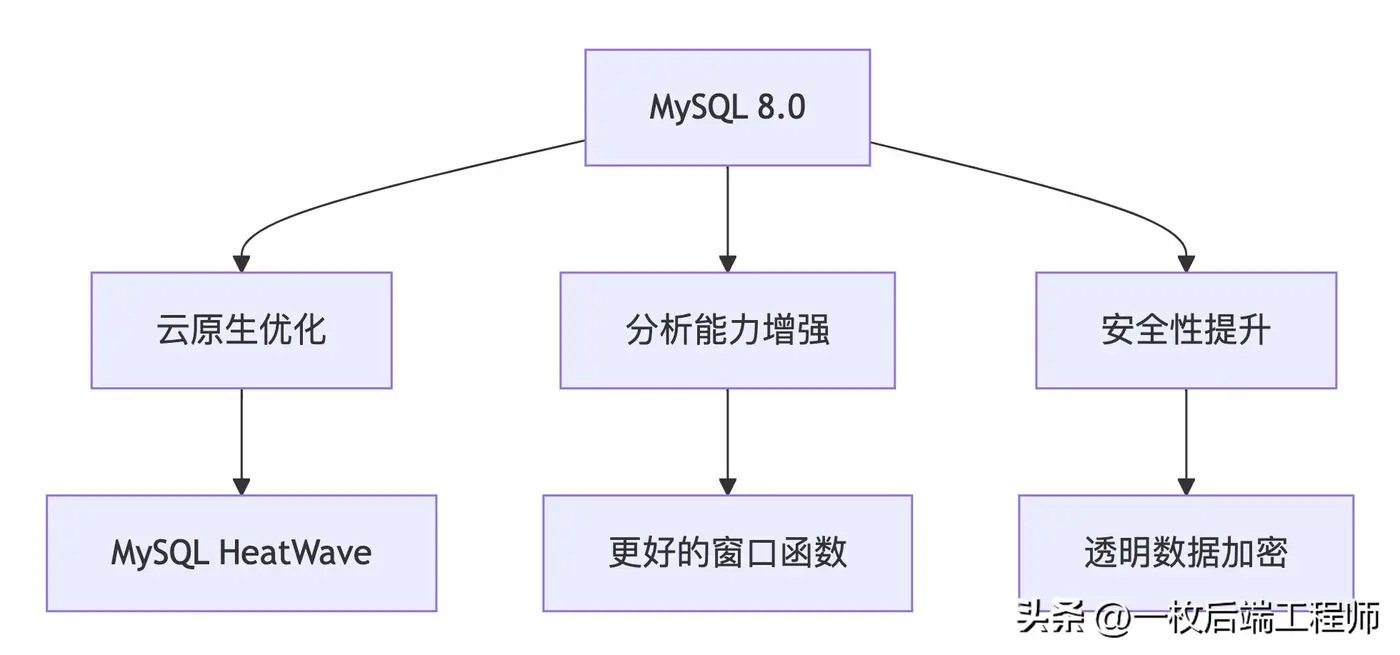 -- 8.0的革命性特性 -- 1. 窗口函数 SELECT name, department, salary, AVG(salary) OVER (PARTITION BY department) as avg_salary, RANK() OVER (PARTITION BY department ORDER BY salary DESC) as rank FROM employees; -- 2. 通用表表达式(CTE) WITH recursive org_chart AS ( SELECT id, name, manager_id FROM employees WHERE manager_id IS NULL UNION ALL SELECT e.id, e.name, e.manager_id FROM employees e INNER JOIN org_chart oc ON e.manager_id = oc.id ) SELECT * FROM org_chart; -- 3. 角色管理 CREATE ROLE developer; GRANT SELECT, INSERT, UPDATE ON app_db.* TO developer; GRANT developer TO 'user1'@'localhost';