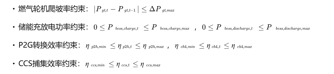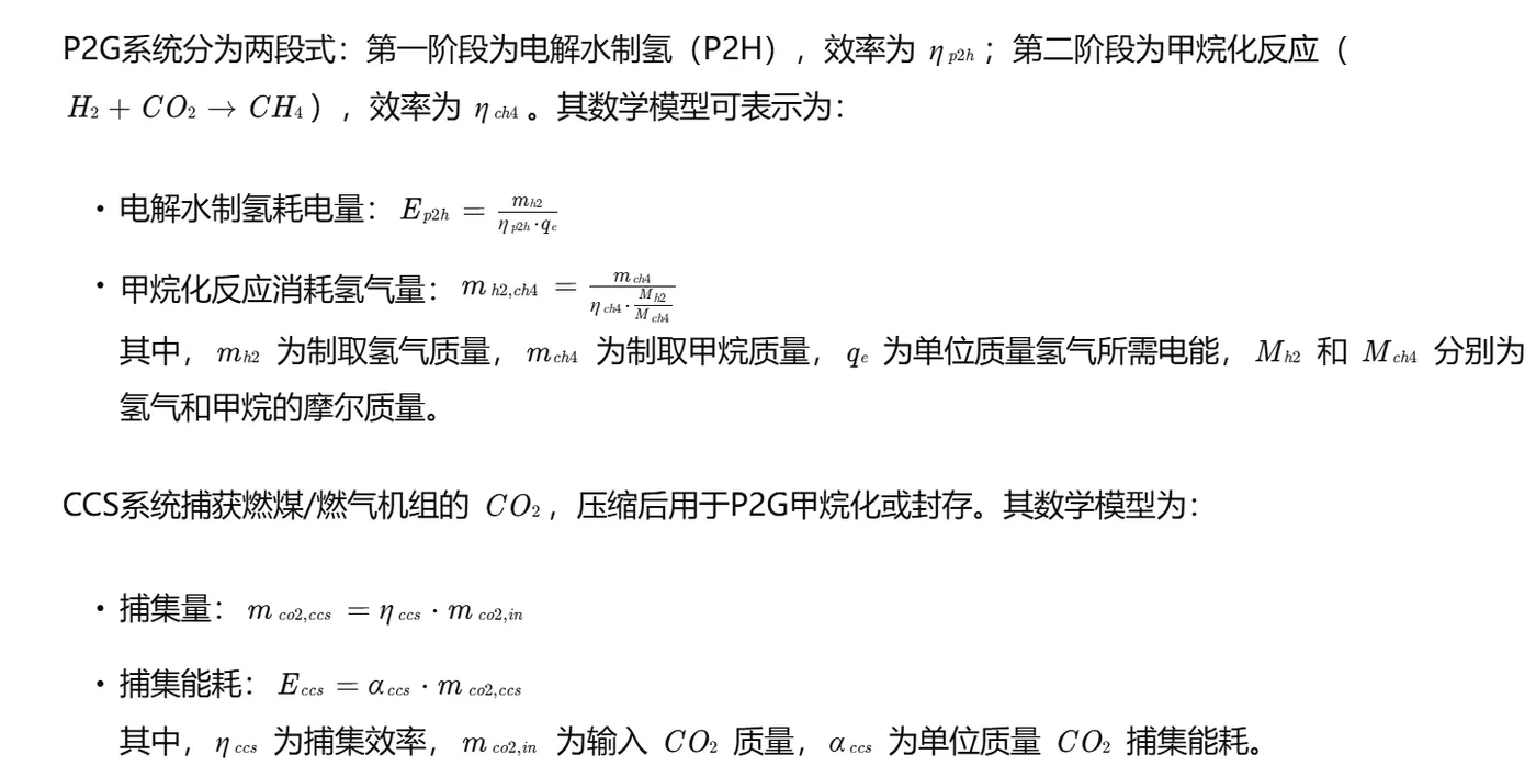 - 能源转换设施:P2G系统(将电能转化为甲烷)、CCS系统(捕获燃气轮机排放的二氧化碳,部分供P2G作为原料);