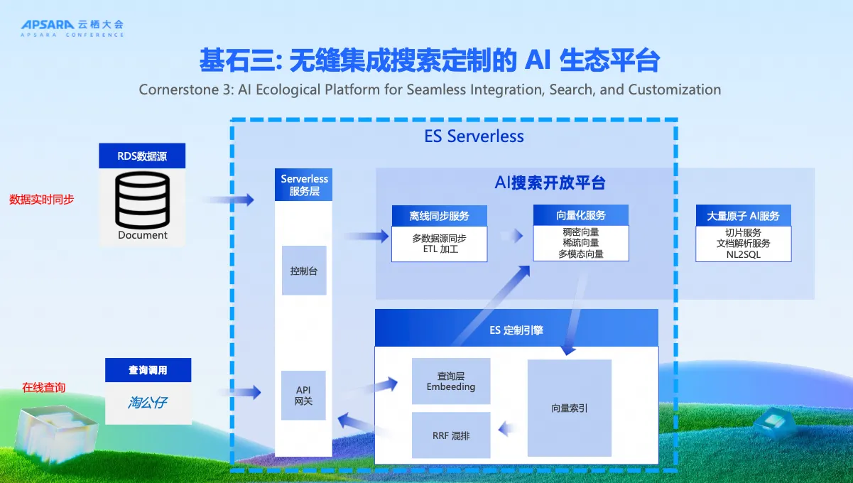 Elasticsearch Serverless 2.0进一步打通阿里云AI搜索生态,构建端到端AI搜索闭环,开发者无需再拼凑和运维分散的 AI 服务。