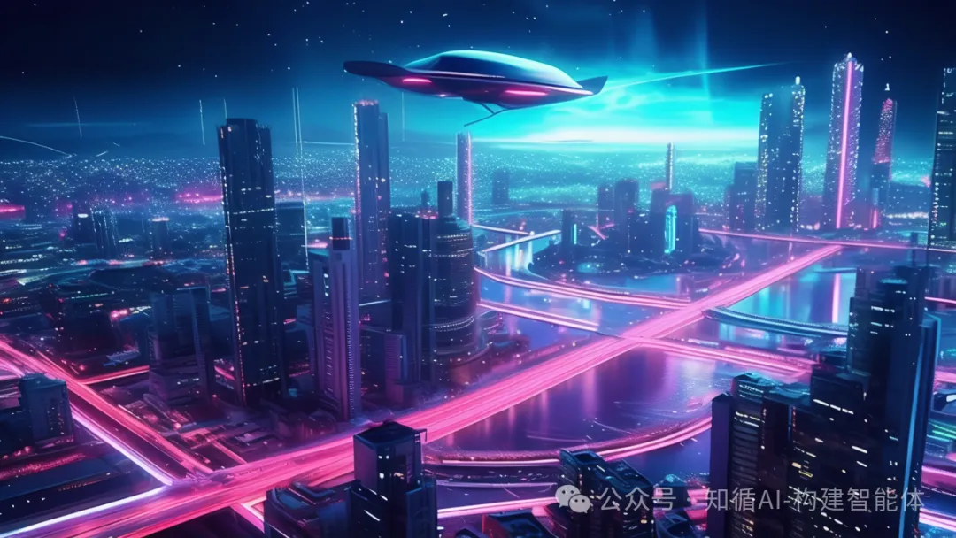 2.示例提示词:未来科技城市,飞行汽车穿梭在高楼大厦之间,霓虹灯光