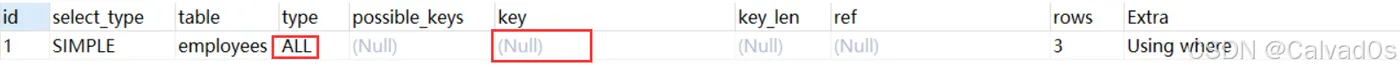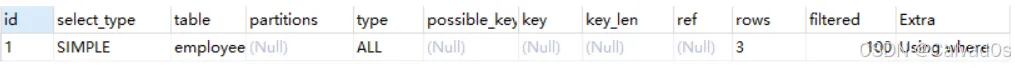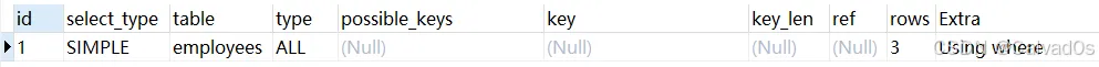 EXPLAIN SELECT * FROM employees WHERE name is null