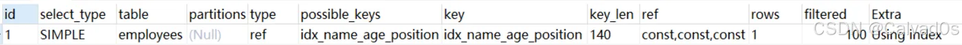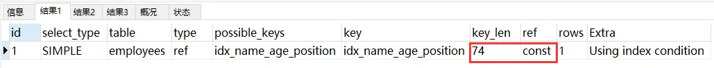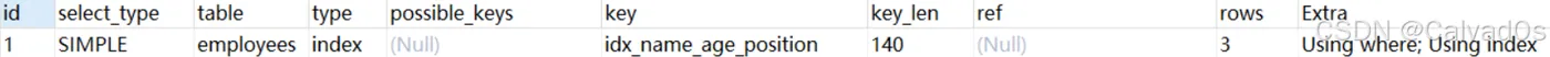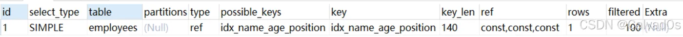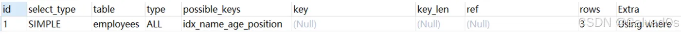 EXPLAIN SELECT name,age FROM employees WHERE name= 'LiLei' AND age = 23 AND position ='manager';