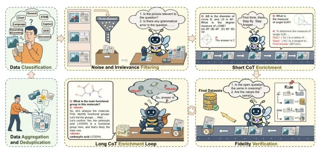 简介: 腾讯混元与清华推出Bee项目,首创“以数据为中心”的全栈开源方案,通过Honey-Data-15M高质量数据集、HoneyPipe数据增强管线及Bee-8B模型,显著提升全开源多模态大模型性能,缩小与闭源模型差距。