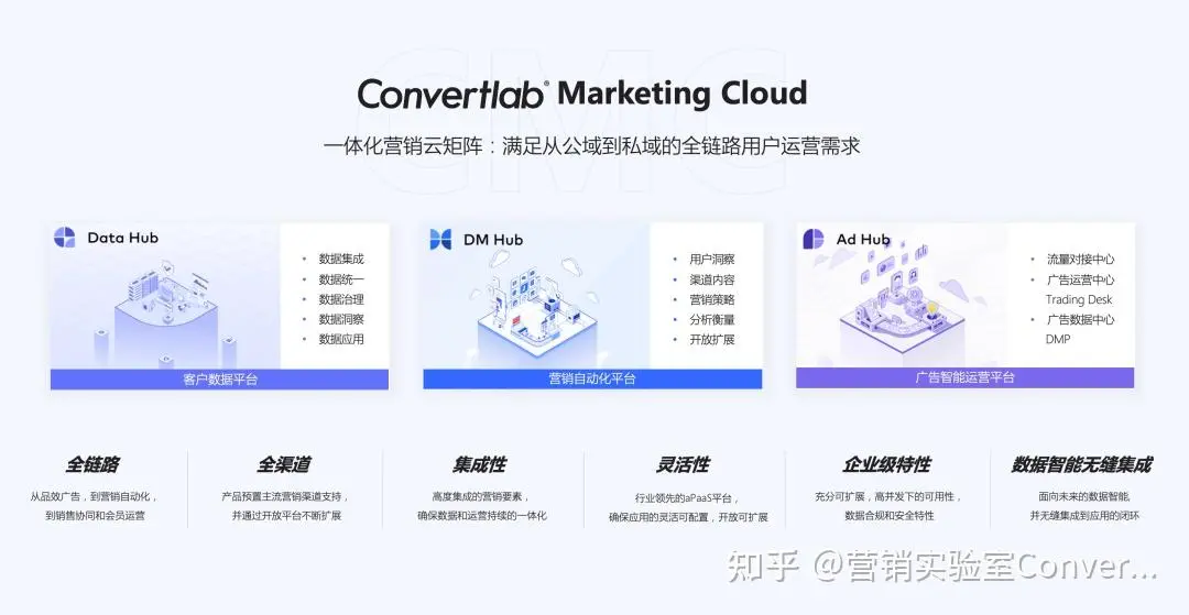 构建了Data Hub、DM Hub、Ad Hub三大核心模块,覆盖广告投放、客户数据管理、营销自动化的完整营销运营体系,自动汇总多渠道客户数据,通过智能化清洗整理,建立统一客户数据平台。