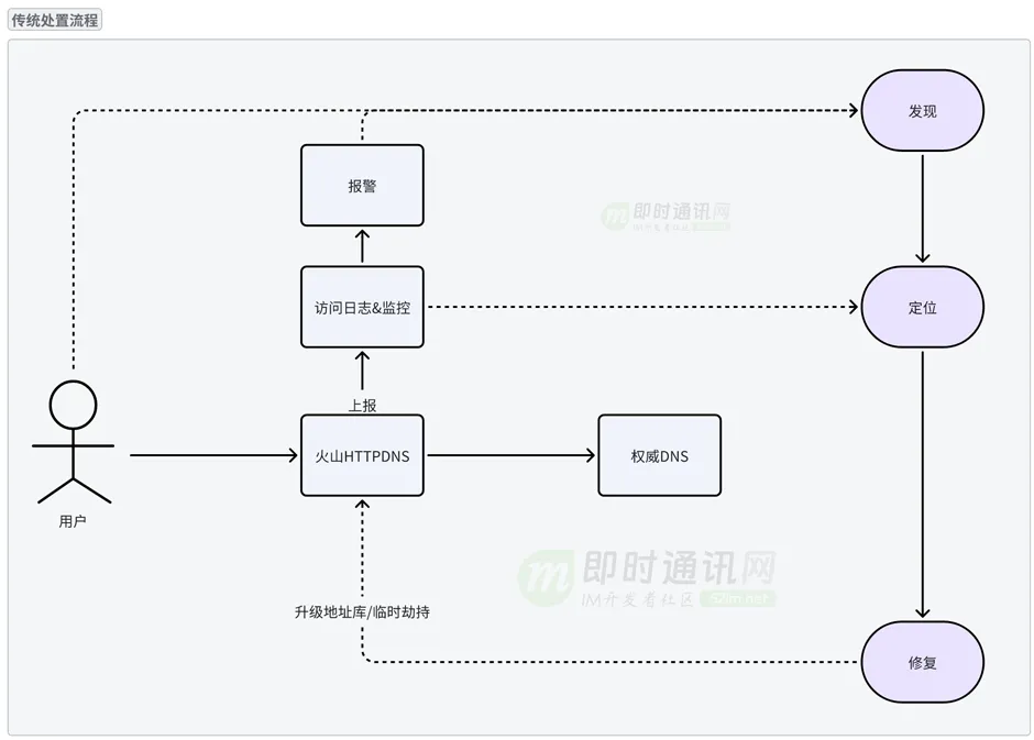 针对 HTTPDNS 调度不准风险,业界主流处置流程采用 “发现-定位-修复” 三步闭环机制.
