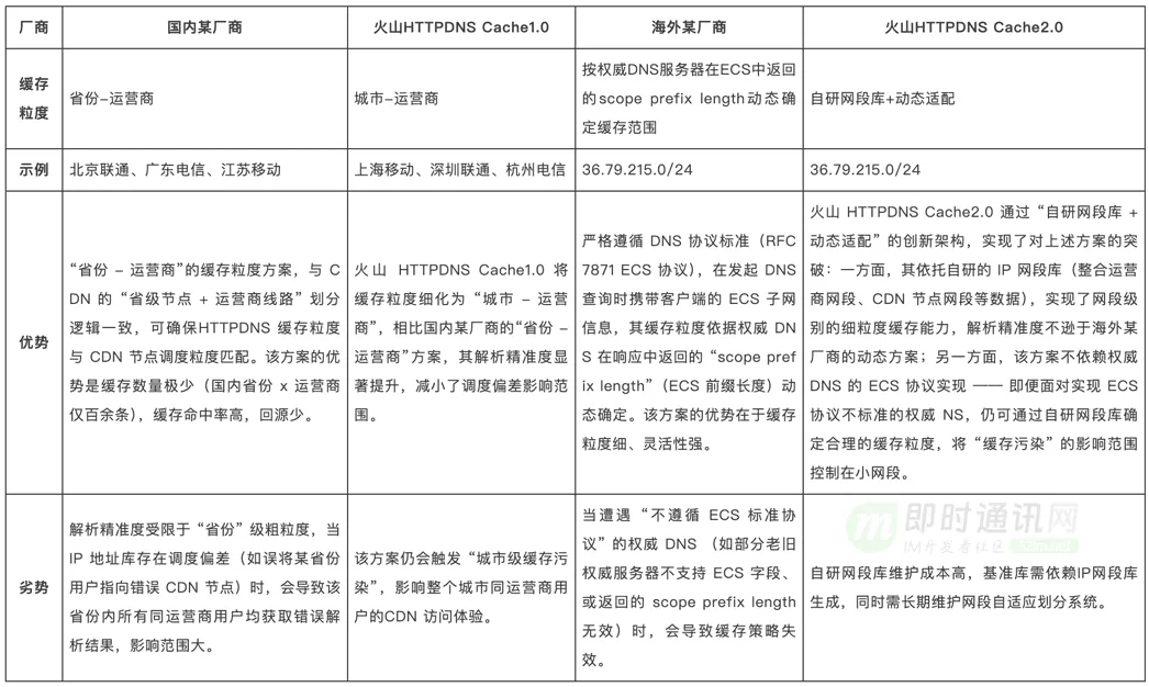 缓存粒度设计直接影响 DNS 解析精准度,主流厂商的方案存在明显差异: