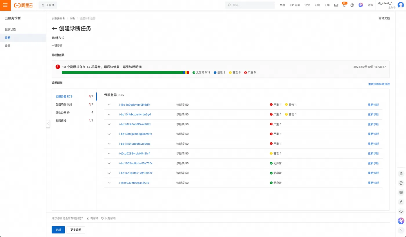 在业务出现问题时,用户可通过健康状态快速判断影响范围,结合诊断功能迅速定位并修复云资源问题,实现业务的快速恢复,显著降低运维复杂度。