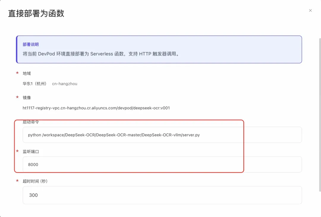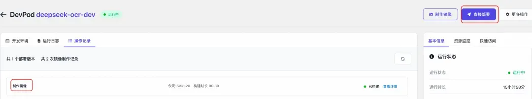DevPod 通过统一的工作空间和无缝衔接的部署能力,打通了从代码到服务的最后一公里。下面,我们将通过 DeepSeek-OCR 模型的实战案例,完整演示这一工作流。