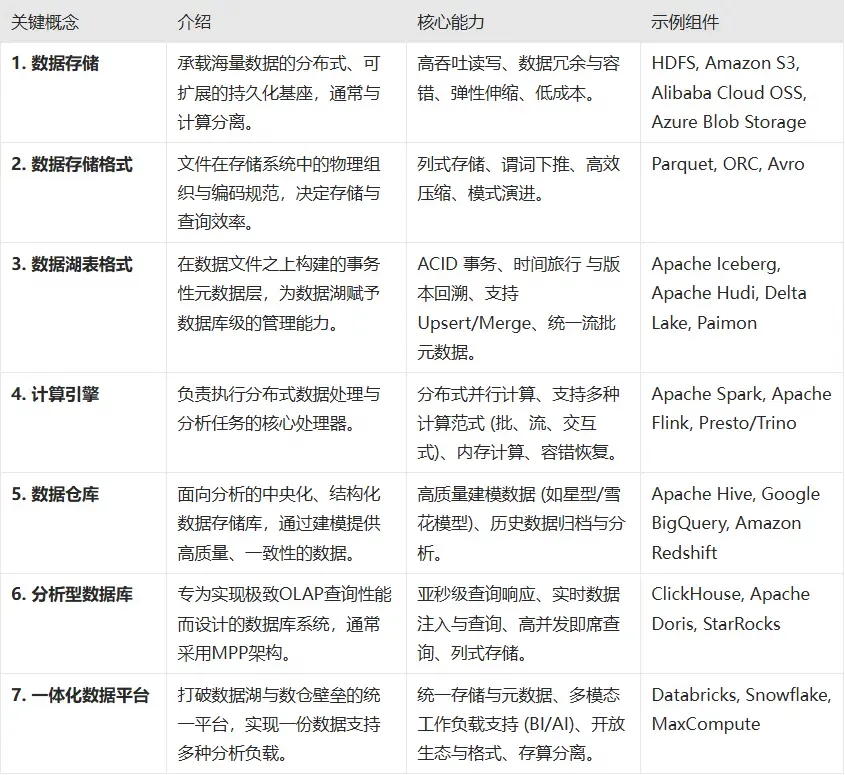 综上所述,尽管实现机制各异,但所有表格式的共同目标都是通过引入事务、版本控制等能力,将数据湖从一个简单的文件存储提升为可靠、可管理的分析型数据平台。