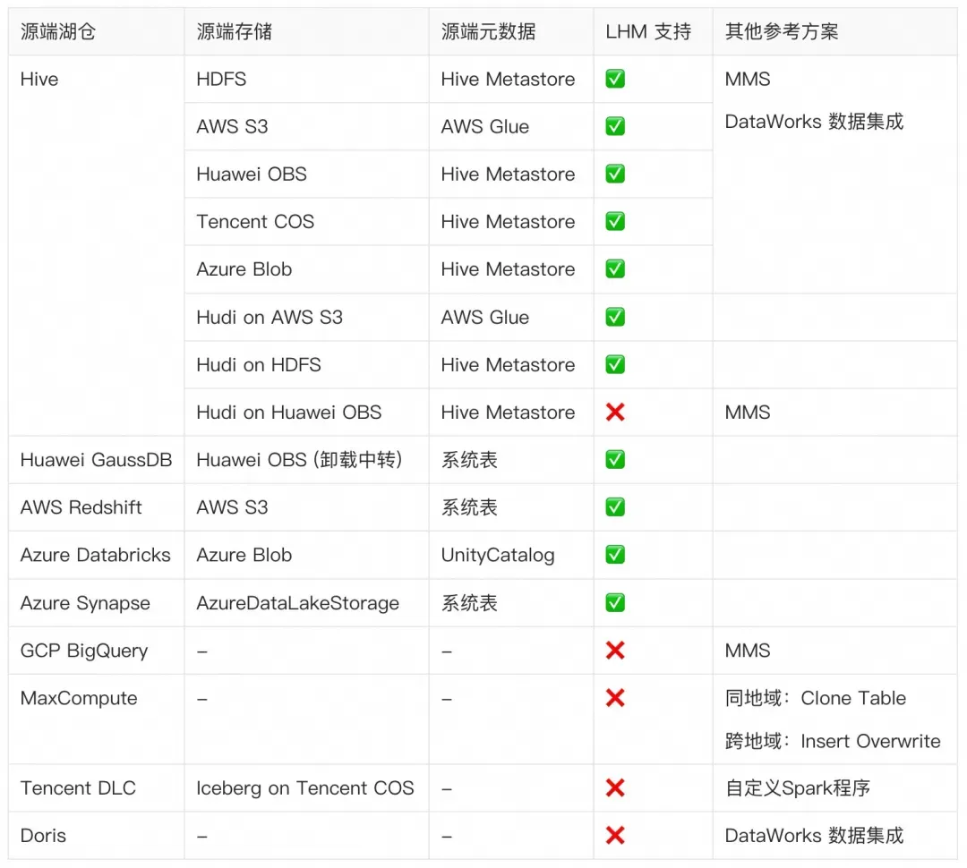 对于数据存储迁移,LHM 支持采用 DistCp 方案,该方案能够利用目标端 EMR 的集群资源来执行数据复制。