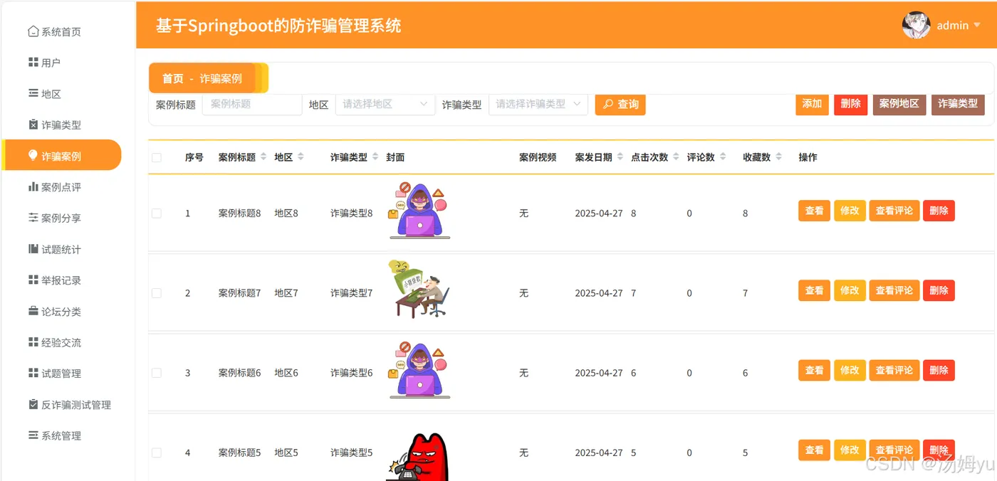 本研究基于Spring Boot框架进行开发,充分利用了该框架的优势,如快速开发、易于集成、高可维护性等,为防诈骗管理系统的构建提供了一种高效、可行的技术方案。这不仅丰富了Spring Boot框架在实际项目中的应用案例,也为类似的信息管理系统开发提供了参考和借鉴。此外,在系统开发过程中,涉及到数据采集、分析、处理以及信息安全等多方面的技术问题,通过对这些问题的研究和解决,能够推动相关技术的发展和创新,提高信息管理系统在应对复杂社会问题时的技术水平和应用能力。综上所述,本研究无论是在社会效益还是技术发展方面都具有不可忽视的重要意义。